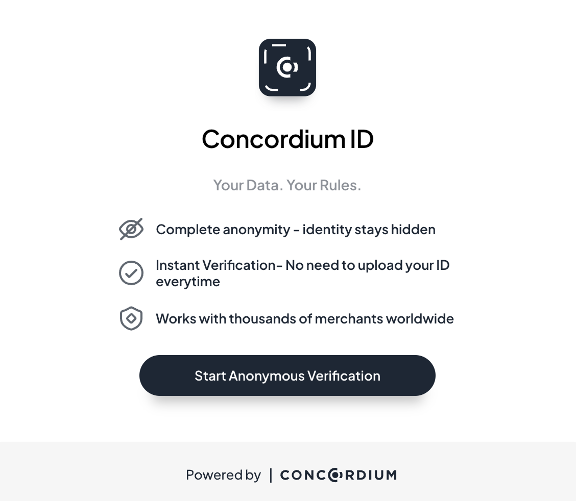 “Verify with Concordium ID” enables users to prove specific facts without revealing underlying personal data.