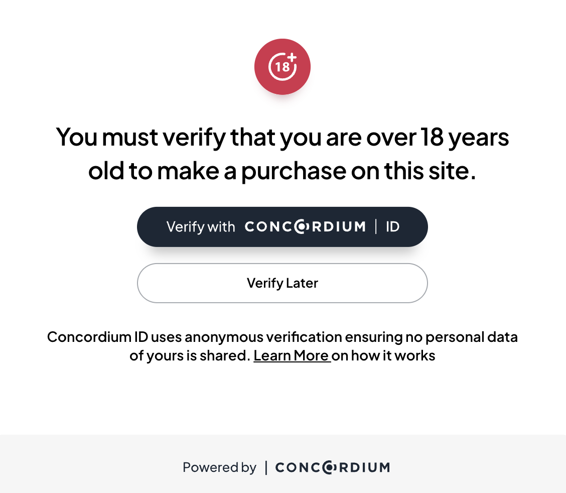 An e-commerce marketplace is now driving faster checkouts for its customers by using “Verify with Concordium ID”. Customers complete age verification with embedded privacy. Through this integration, the merchant has eliminated storage infrastructure costs, reduced auditability overheads while ensuring better user experience and conversions.